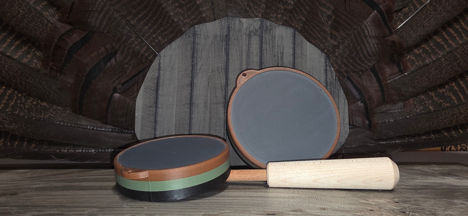 3D printed, 3 and 3.5 inch Slate over Walnut calls, 3D printed conditioning box, and a cherry striker